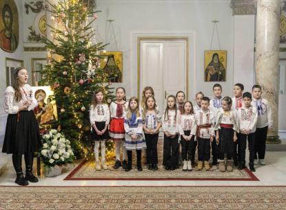 (Foto) Liceul „Prof. Mihai Dumitriu” din Valea Lupului – Colindători la Reședința Mitropolitană 2025
